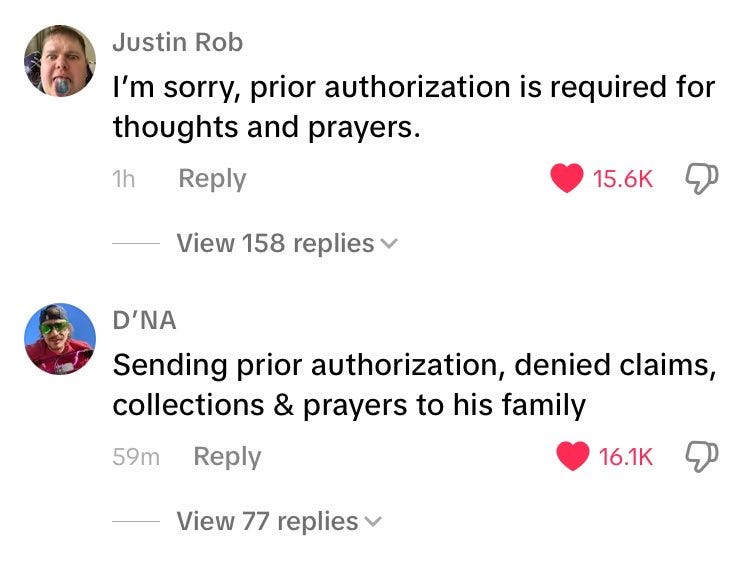 And maybe no other company than UHC has been more at the center of healthcare denial that can more often than not bankrupt an entire family or represent a death sentence.