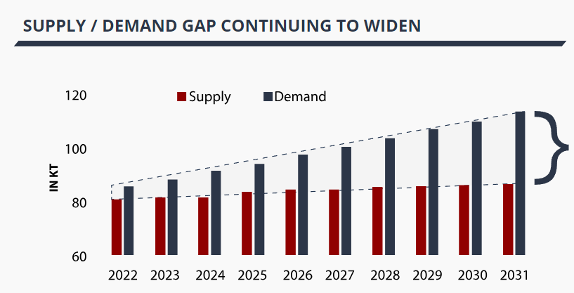 Not central to the thesis, especially with EVs sales slowing down, but still worth mentioning. Especially as it represents 30% of the current demand (see below for an overview of application by sectors).