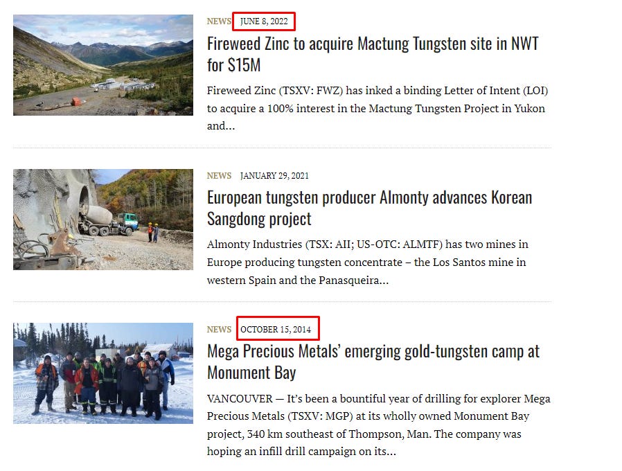 You find other miners like this, for example Adex Mining, with a website maybe updated last in 2018 (?). Other miners that had tungsten mines in the past do not mention these assets anymore.