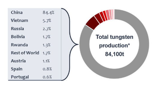 And the more advanced the military tech, the more tungsten it requires, for example hypersonic missiles need a lot of it to survive the colossal temperatures created by air friction at Mach 10+.