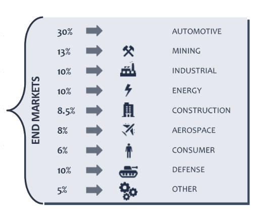 It is also essential in the production of batteries, EVs, and semiconductor manufacturing, as well as mining equipment, manufacturing, etc.