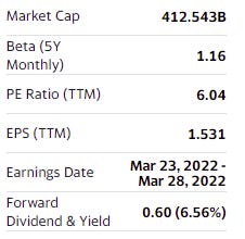 Production is expected to keep growing thanks to domestic and oversea (mostly Guyana) discovery and development. Profitability is high. Ratios from P/E to price to free cash flow reflect a severe undervaluation. Dividend is at a 6.5% yield and should climb higher in 2022 and stay high later on.