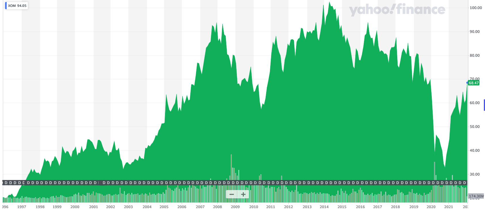 For example, Exxon stock has already doubled. How much potential to the upside is left? Probably some, but not as much as I would like.