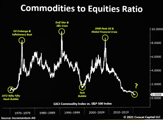 Another area with a long way to go is commodities. The stuff people actually need more than social media, online ads, and Netflix streaming.