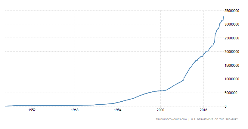 So it took 205 years to accumulate the first 1 trillion US dollars of debt.
