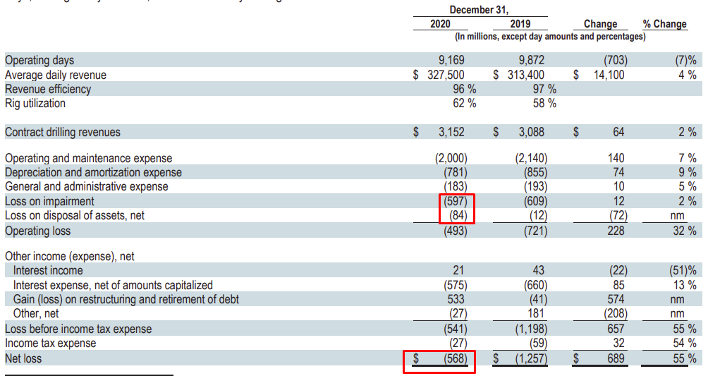With all the talks about most of the industry going bankrupt, it make sense to be more than a little worried about Transocean financials. The company reported massive losses in 2020, which could at first glance put into question the survival of the company. When looking into the income statement, it however appears that revenues was standing at $3.1B for total expenses around 2.9B.