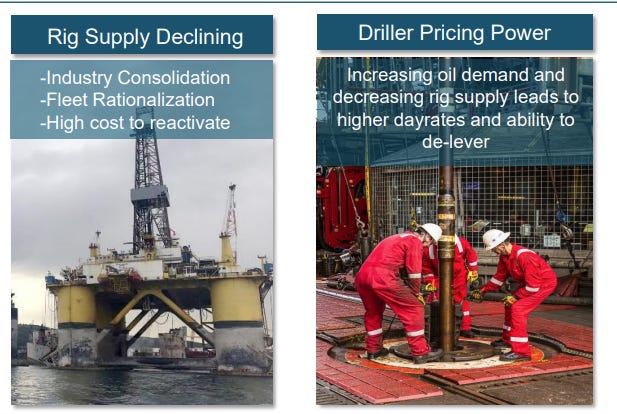During early 2020, it was not really clear if ANY offshore driller was going to survive. Would the spring crash have triggered a real recession, the weakened companies would all have failed to survived with rig utilization price below cost for years to come. Even with completely unprecedented stimulus, all of Transocean/RIG competitors that where not parts of a larger service company or partially nationalized entered bankruptcy.