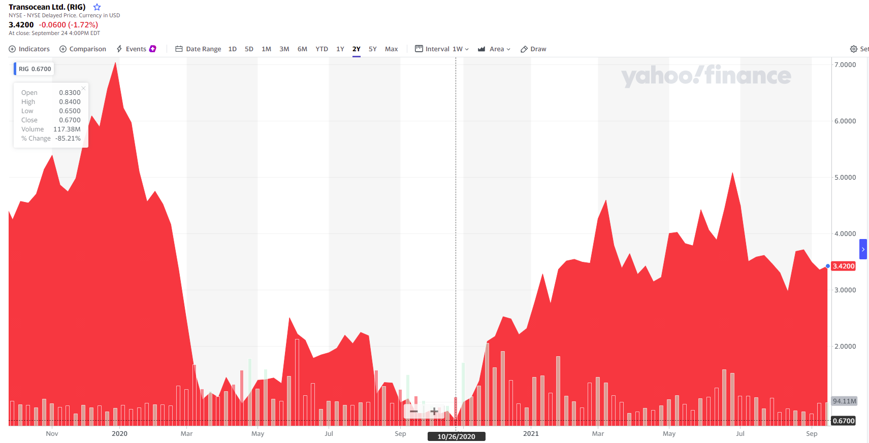 I remember very well the period when Transocean stock hit its all-time high, in 2007. It is actually around that period that I started to learn about markets and economics, while doing a Biochemistry Ph.D. (Yes, I had rather an eclectic career path).