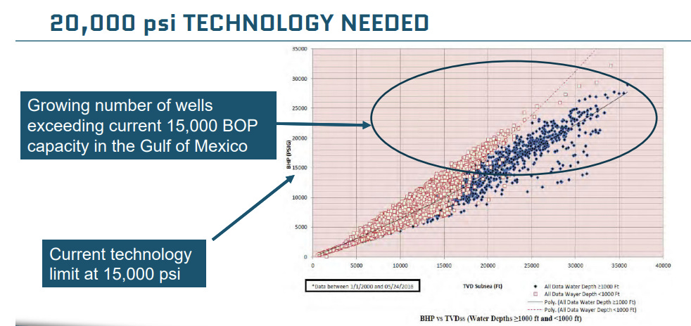 The current technology on 99% of drillships is limited to up to 15,000 psi. Only higher capacity up to 20,000psi, something the patented technology of Transocean is able to do, will be able to maintain production in the Mexico Gulf and other similar regions.