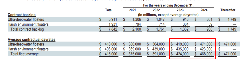 Already, the signed contracts are showing the expected rise in dayrate, with the contracts in 2023 and 2024 at a minimum of $420,000/day.
