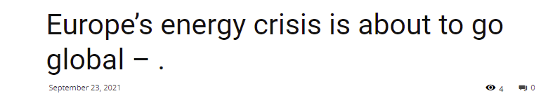 With Europe entering a potential energy crisis this winter and with gas & oil prices hitting levels not seen in many years, it is not a stretch of the imagination to expect at least ONE of the following to happen in the next months or years: