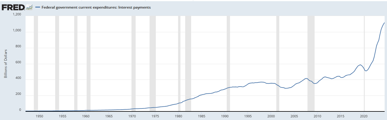 So are the US interest payments, having jumped above a trillion and larger than the already massive and wasteful defense spendings: