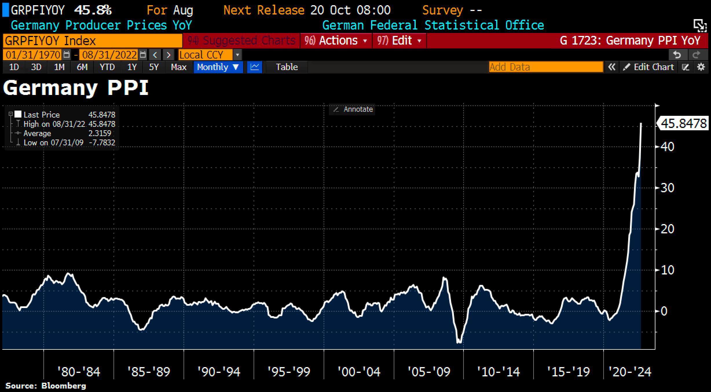 Is more inflation coming? For sure, producers’ input costs are not getting cheaper. They are actually up 45% (German data above).
