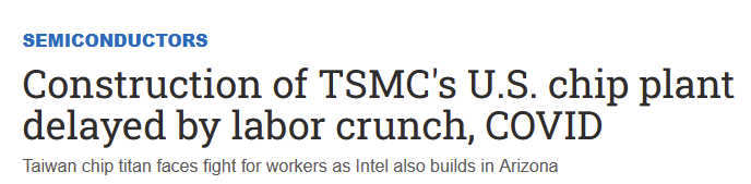Making matters worse is the intense competition for workers in Arizona, including from U.S. semiconductor giant Intel, which has built a long-standing relationship with the state and local governments and communities during its 40 years there.