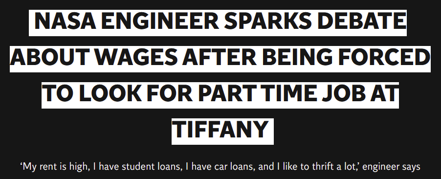 I mean, what does it say about our society if NASA Engineers feel like they need extra part-time jobs?