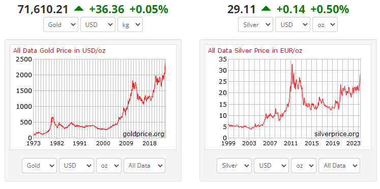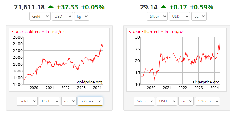 The price of gold and silver is shooting up, with both hitting their highest points in 5 years and gold at its highest point ever!