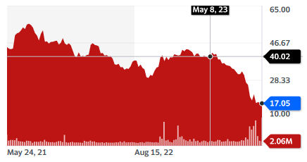 Share price performance has been poor, to say the least, with a 60% collapse since May.