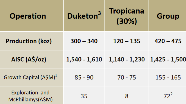 Duketon AISC is around $1140/ounce, and a VERY low $855/ounce for Tropicana. The group AISC is just above $1000/ounce.
