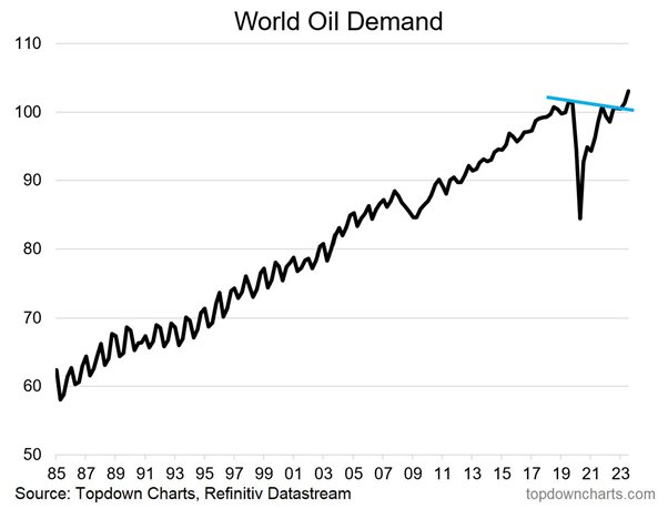 For a while, the pandemic broke a multi-decade trend of rising demand, but we seem back on track, not surprising with rising global population and the industrialization of vast areas of Africa, Asia and Latin America.