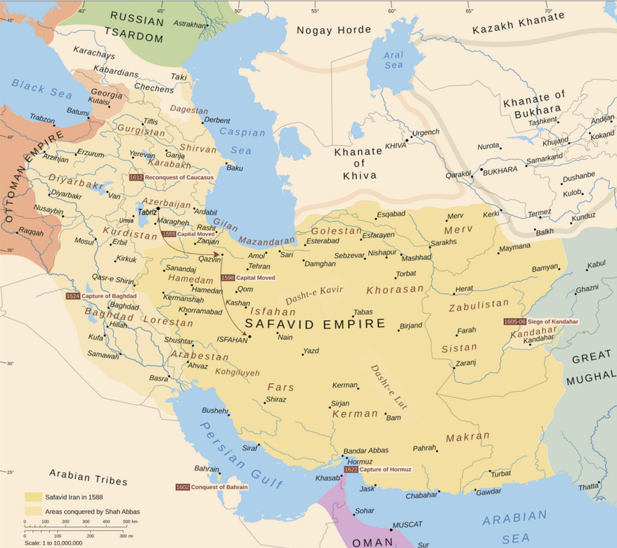 The Safavid empire, which would be key in defining modern Iran's identity by imposing Shiia Islam on the region.