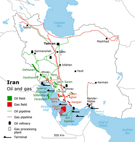 Iran's oil & gas is located in the South-West, the region Sadam Hussein hoped to take over in the 8 years-long Iraq-Iran war.