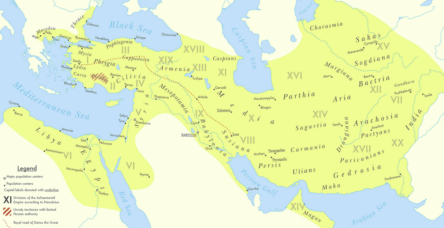 The Achaemenid empire, aka the first world superpower. That’s the Persians fighting at Thermopyles in 300.
