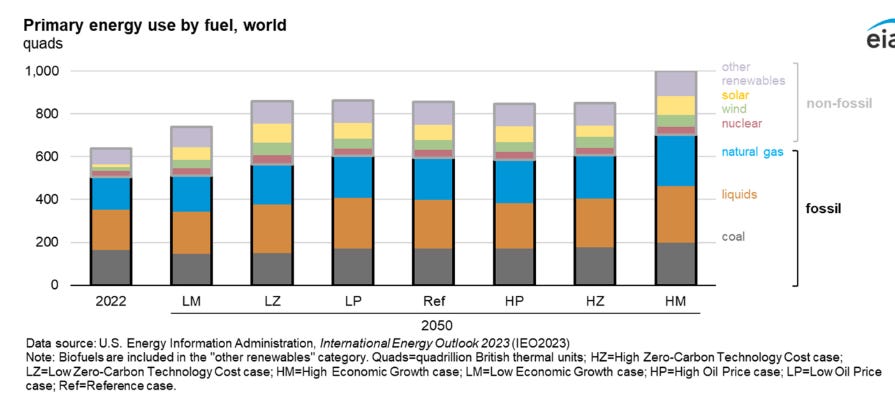 Even the most politicized projections like from the EIA still show fossil a major energy source in 2050 in ALL scenarios.