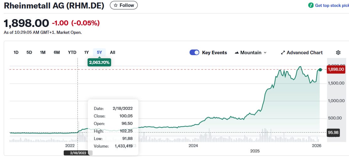 As I said, directly investing in weapons manufacturers is a trade that is 4-years too late, just a glance at some chart is a good indication, together with Trump's ban on dividends and share repurchases.