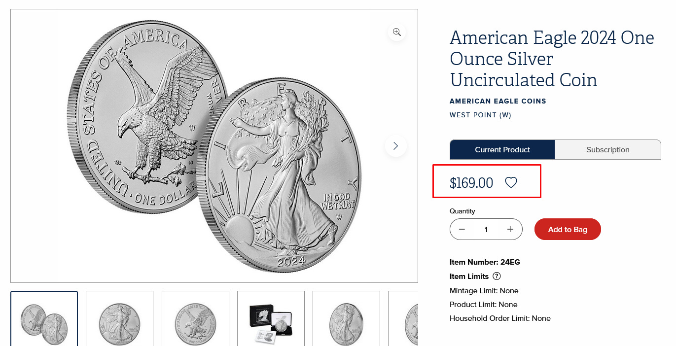 Same physical that the US Mint repriced over the weekend from <$100 to $169.