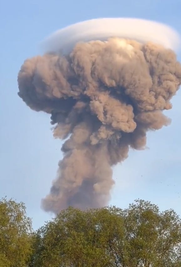 This in turn allows Russia to score some occasional massive hits on ammo/fuel storages (follow the previous link for the videos, as well this link and this link). The blasts are big enough to look nuclear, even if there are just “normal” explosives: