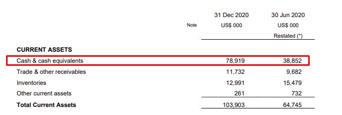 Let's start with that famous cash. The company was actually sitting on US$78 million of cash at the end of 2020. With earnings still strong and gold prices in the $1700 range, this is only getting better by the day.