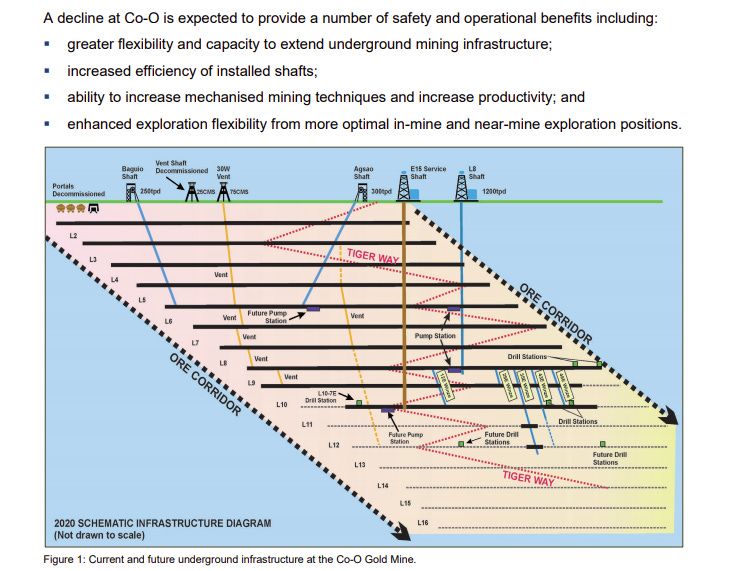 In fact, they are planning to spread over the next 3 years US$54 million to build a decline access to further reduce operating costs and extend the mine's lifespan. The plan just got approved on 16th of April, you can see the full data HERE. The decline is basically a long underground slope to better access the deeper level of the mine. It will expand the mine, from its existing 10 levels, with an extra 4 levels.