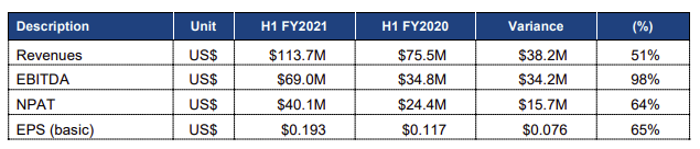 On April 4th 2021, the share was trading at 0.84 $AUD for a market capitalization of 174 million Australian dollars. This means that in the first half of the fiscal year, only 6 months, the company has generated a net profit after tax (NPAT) of 40 million $AUD. Or no less than 22% of the whole market cap.
