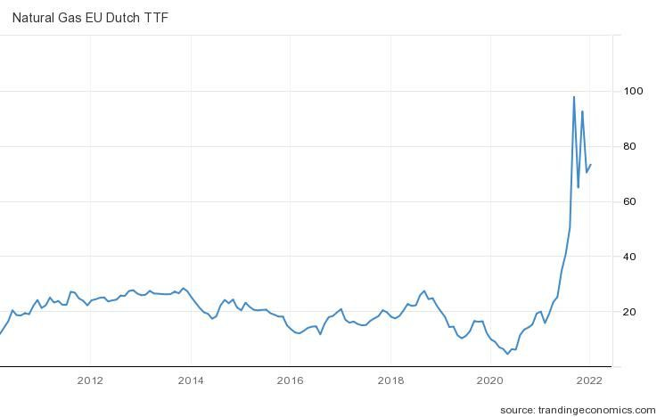 The first obvious cause of the surge in energy cost is the price of natural gas in Europe. It went x4 in just 1 year.